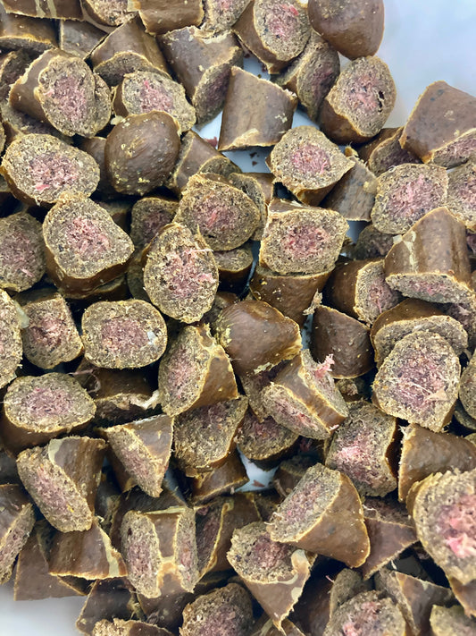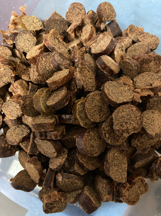 As a dog trainer I was getting LiverCake made for us and would chop these up into smaller chunks, these were smelly and not ideal in a pocket but they work as really good rewards. One of my colleagues bought a pack to trial which all the dogs absolutely loved. The feedback from our clients when we gave some out on training sessions was absolutely brilliant and we get huge value for money compared on the other treats we were buying and such a lot less faffing about and hassle.