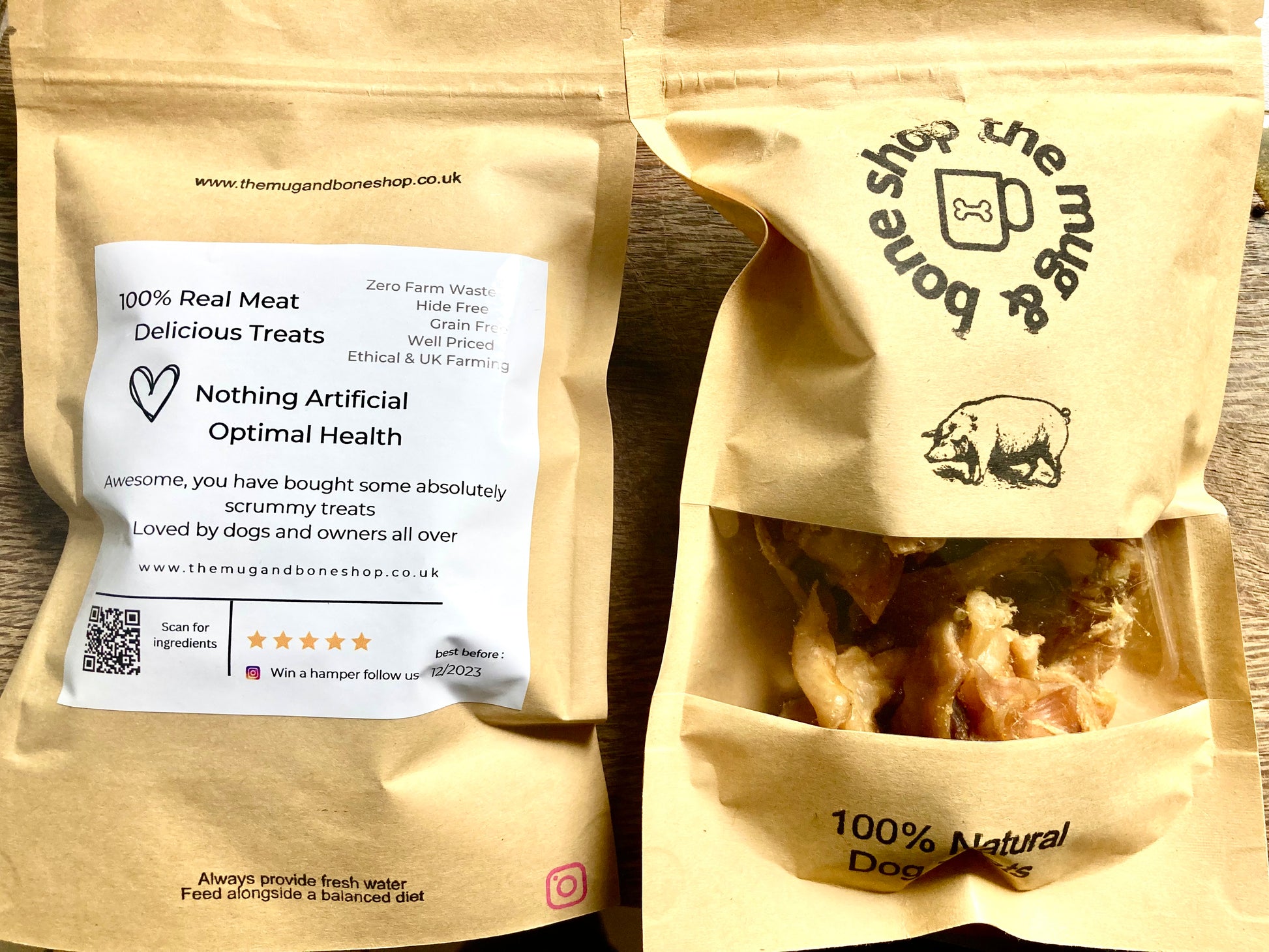 Naturally chewy and completely delicious, our Pig Ear Strips are a very popular product. Made from 100%, dehydrated pig ears with no artificial chemicals or preservatives, they give a delicious taste and satisfying chew that all dogs are sure to love!